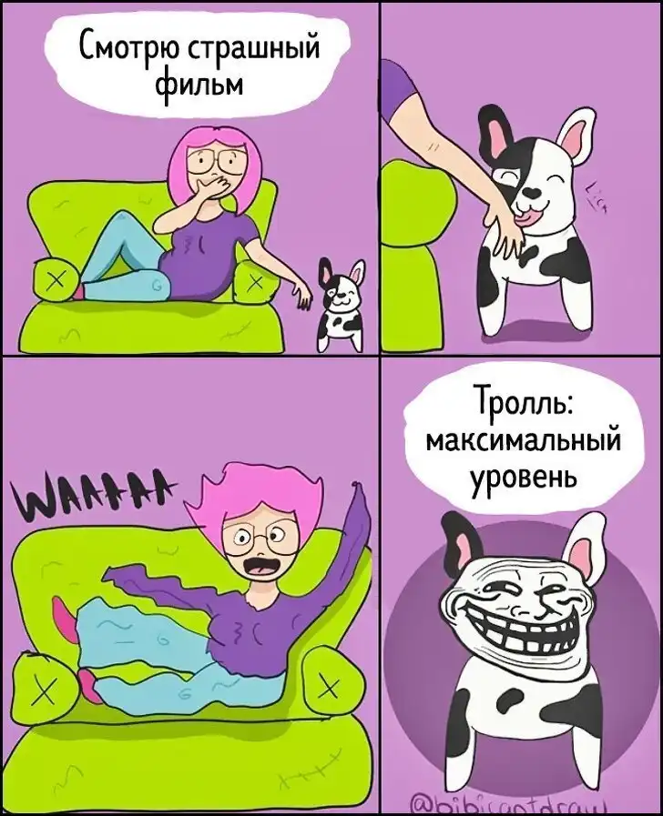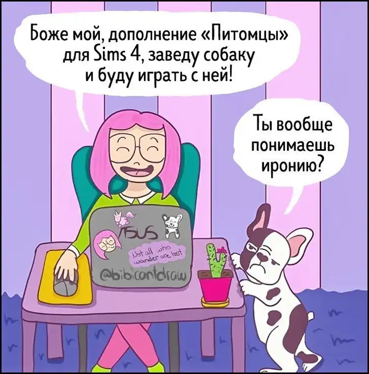 Болгарская художница, живущая сейчас в Норвегии и известная в Сети под именем Биби, честно признаётся подписчикам, что не умеет рисовать, но любит, — и кто ж ей запретит! Вот девушка и рисует. Как может. И шутит как может — о себе, своём парне и своём бывшем парне, своей жизни и ситуациях, с которыми она сталкивается каждый день.