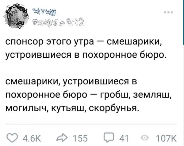Пост о чёрном юморе, спонсором которого