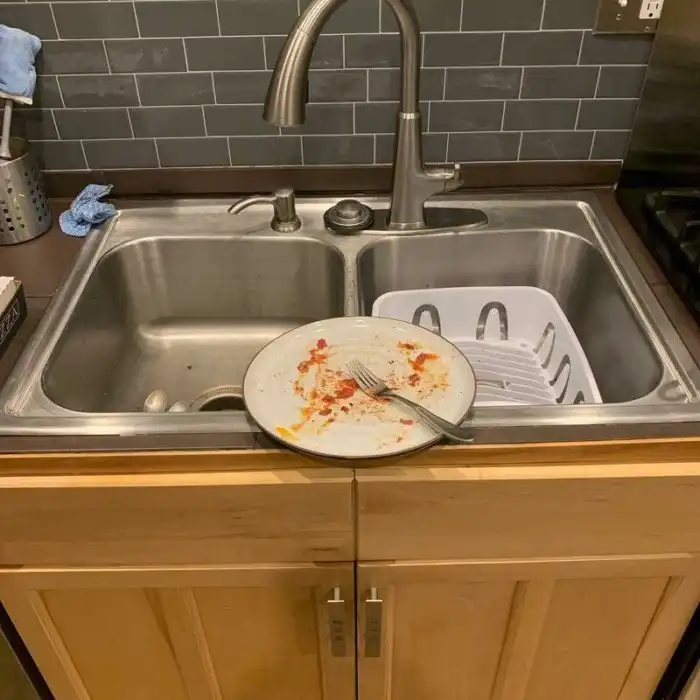 "Мой муж всегда оставляет грязную посуду именно на этом месте. Не в раковине, не в посудомоечной машине, а здесь".