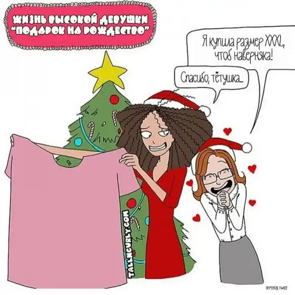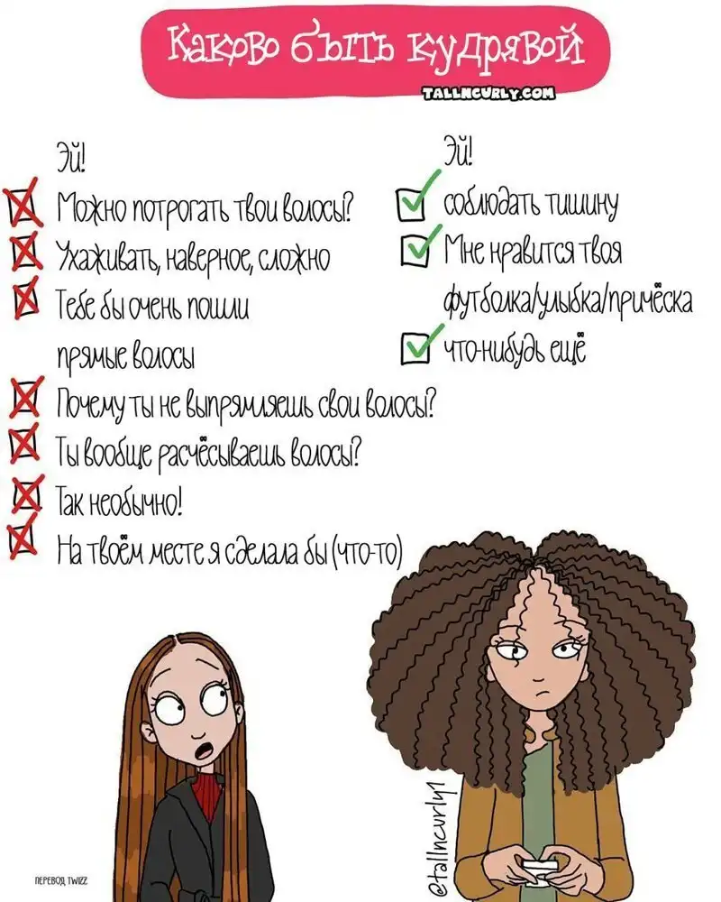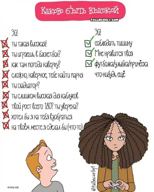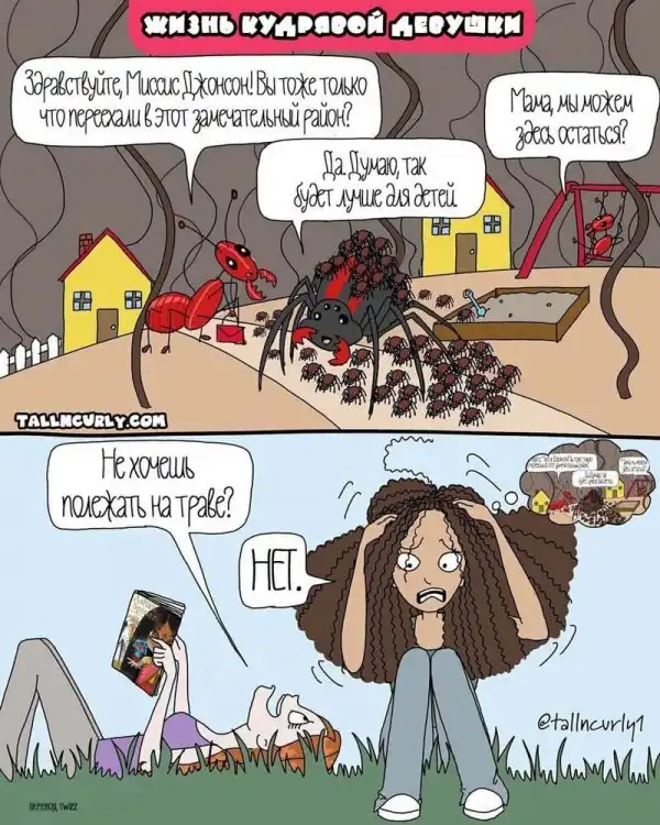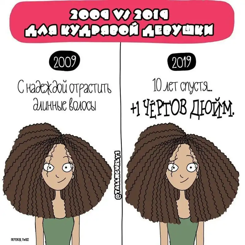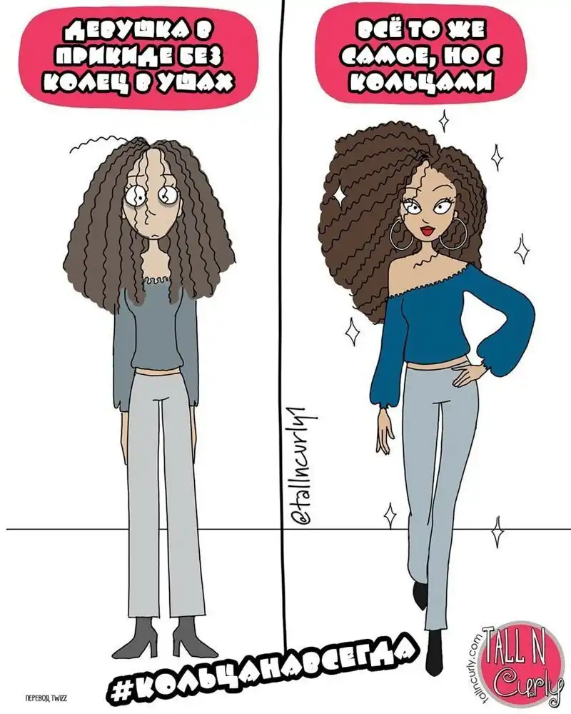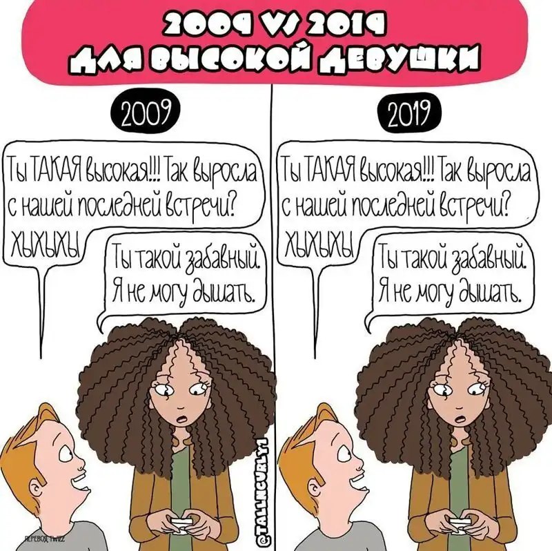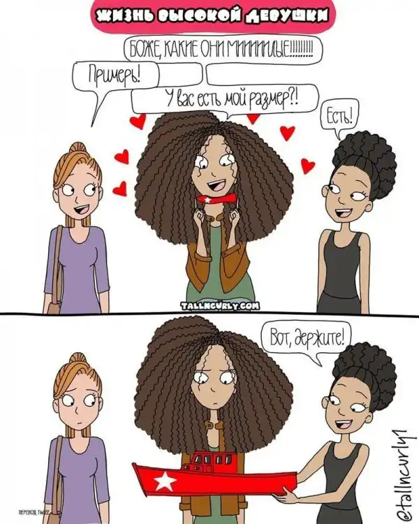 Одарённая и весьма высокая художница Чеян Лефевр, выступающая под псевдонимом tallncurly («высокая и кучерявая»), рисует комиксы о жизни со своими бойфрендом, ростом и кудряшками.