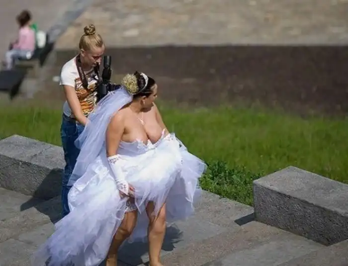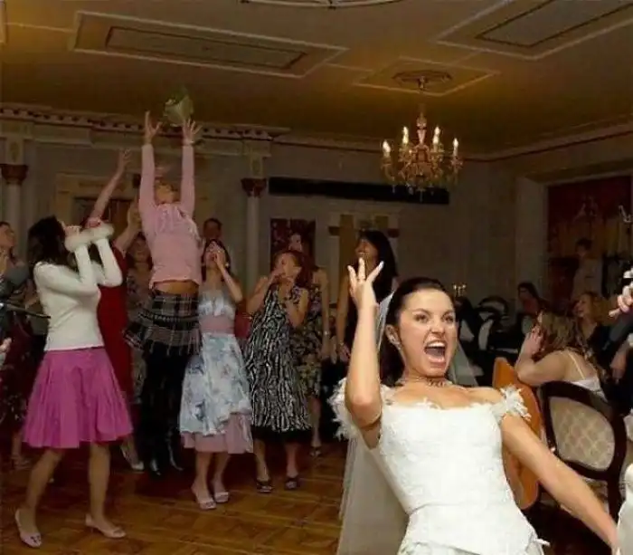 Свадьба - безусловно радостное событие, предлагаем вам посмотреть фото весёлых моментов, где каждый старается, как может.