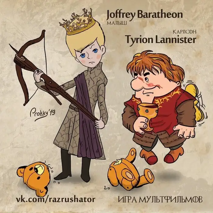 Малыш в роли Джоффри Баратеона и Карлсон в роли Тириона Ланнистера. У этого Карлсона зависимость совсем не от варенья, а игры Малыша отнюдь не такие безобидные