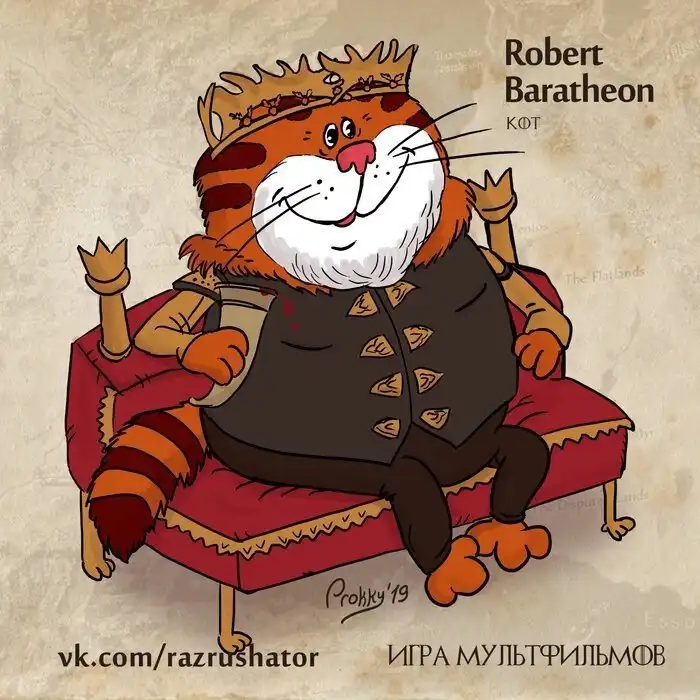 Эссос, Эссос.. Не были мы ни на каком Эссосе! Нас и здесь неплохо кормят! Кот из «Возвращения блудного попугая» — психологический двойник короля Роберта Баратеона