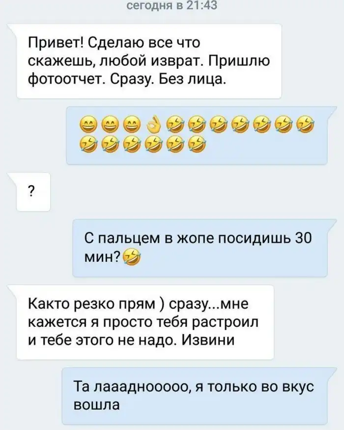 4. Некоторым девушкам надоедают дебильные сообщения - и они смеются над извращенцами