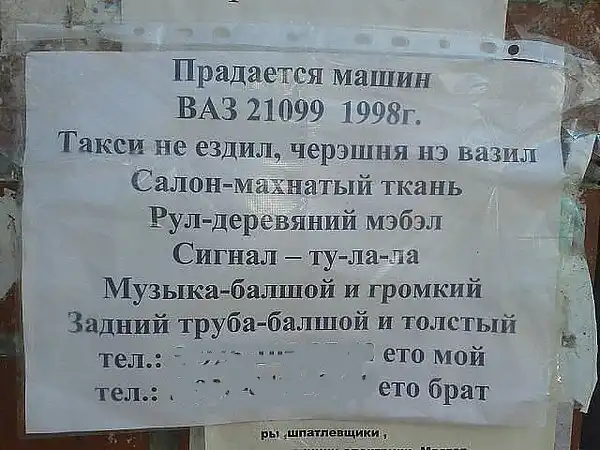 В наших краях писать объявления - это искусство. Креативные клочки папируса на вертикальных поверхностях нашей родины всегда вызывают смех, даже если объявление посвящается потерявшейся куртке. Таким объявлениям позавидовал бы сам Достоевский, поскольку их авторы могут передать всю глубину страдания и отчаяния, гнева и радости всего в нескольких предложениях.
