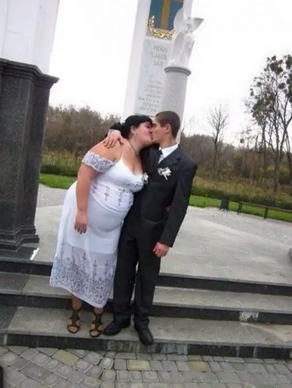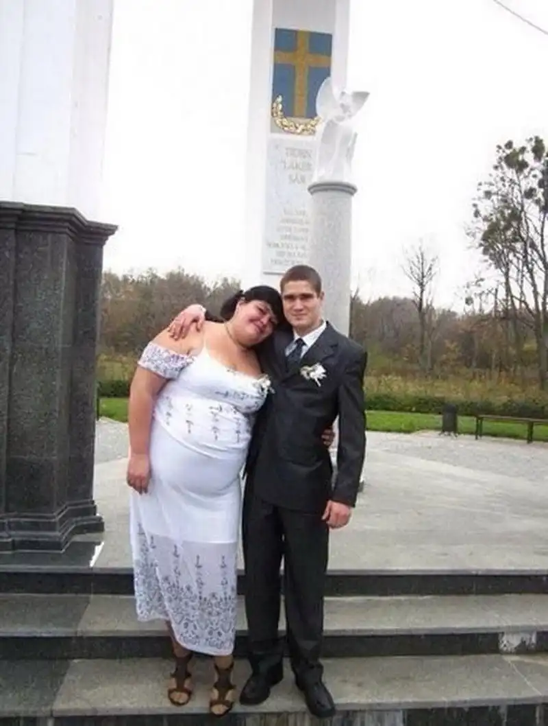 Глядя на свадебные фото одной пары, складывается ощущение, что в этой истории все не так чисто. Либо жениха взяли в заложники, либо у него больные ноги, и он не может убежать, либо… тут твое мнение. Ну согласись, это же какой-то мрак.
