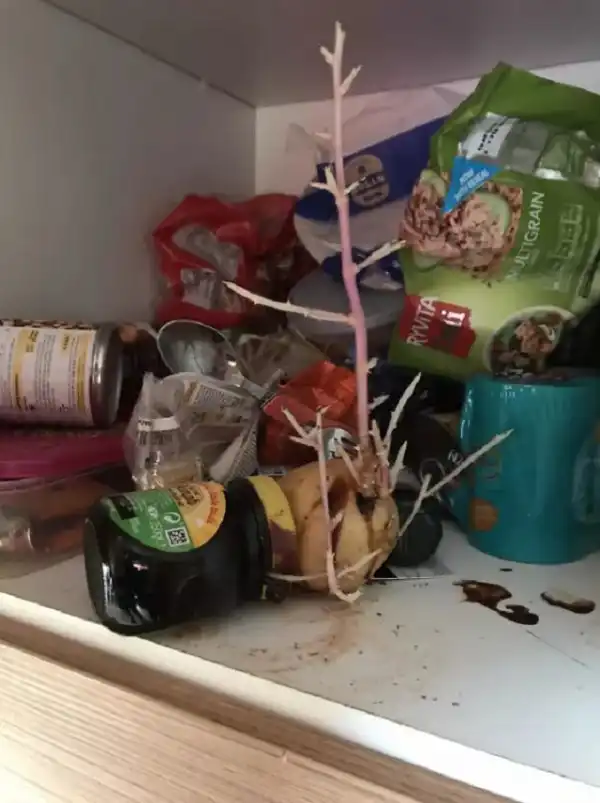 "Мой сосед - далеко не чистоплюй, и вот доказательство. Картошка, проросшая в его шкафчике"