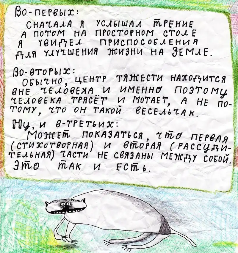 Необычный человек Павлик Лемтыбож (он же Павел Власов, питерский поэт, музыкант, барабанщик и автор текстов группы «Сказы леса») помимо всего прочего рисует занятные иллюстрации к собственным стихотворениям. Получается иногда абсурдно, иногда сатирично и злободневно, порой трогательно, но всегда ярко.