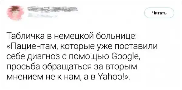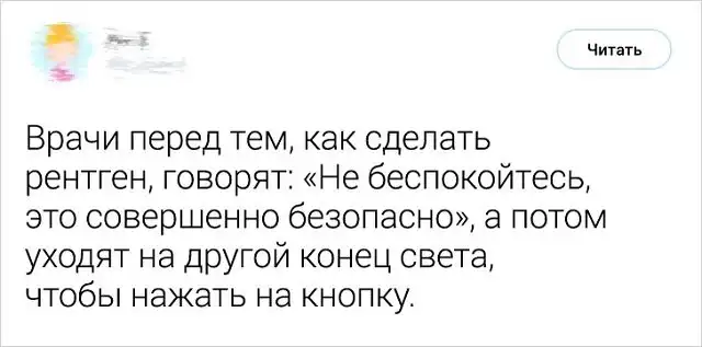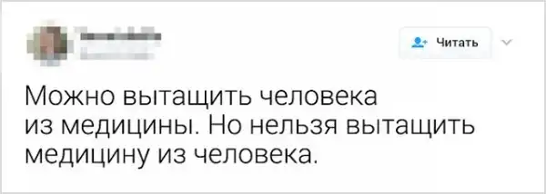 У врачей особенное чувство юмора. Поскольку доктора перестают работать только тогда, когда они ложатся спать, многие из них страдают от профессиональной деформации. Поэтому, чтобы не сгореть на работе, они справляются со стрессом с помощью юмора, которое разительно отличается от нашего. Давайте посмотрим на подборку типично "докторских".