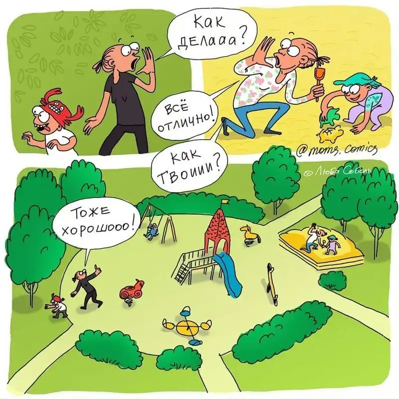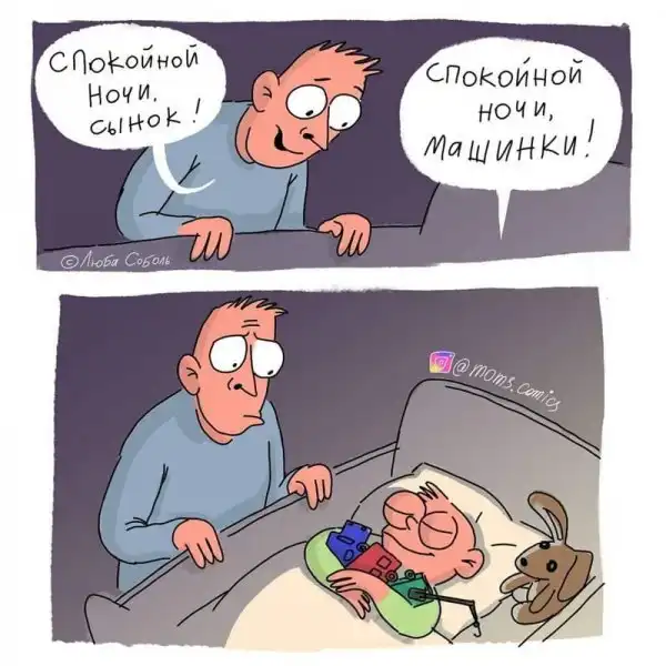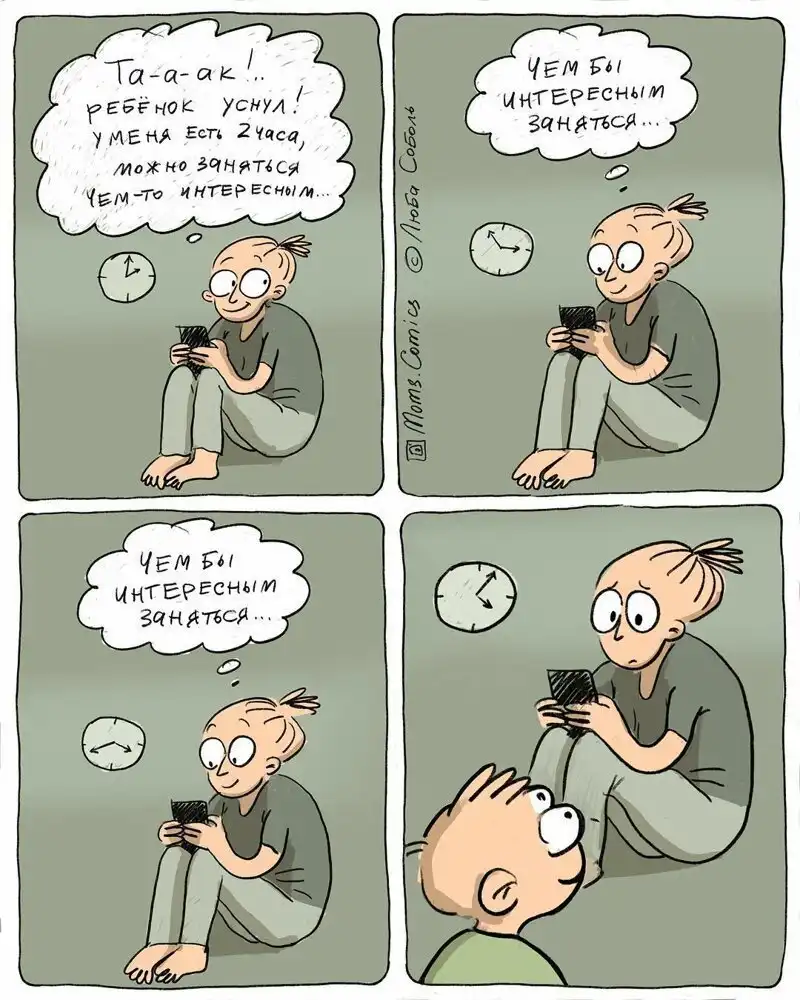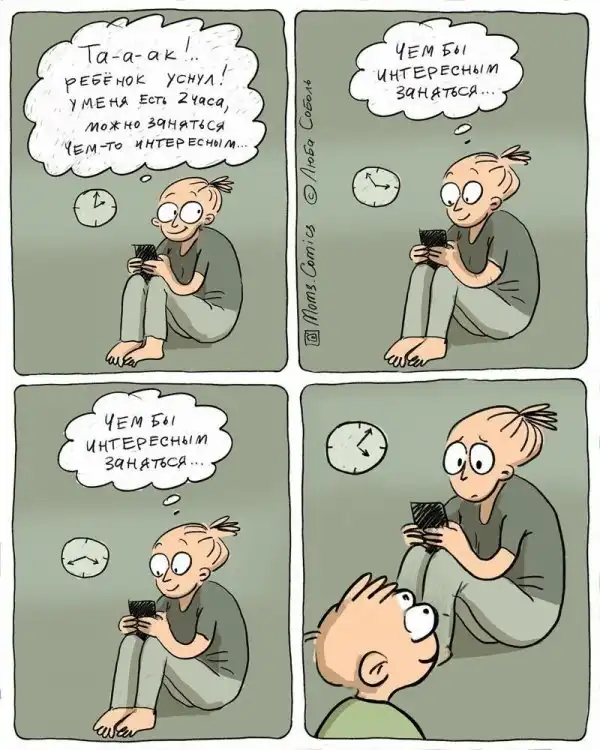 Художница и мама Люба Соболь рисует честные комиксы с красноречивым названием moms.comics, освещая бытовые моменты семейной жизни, которые кого-то бросают в дрожь, а кого-то заставляют понимающе покивать.