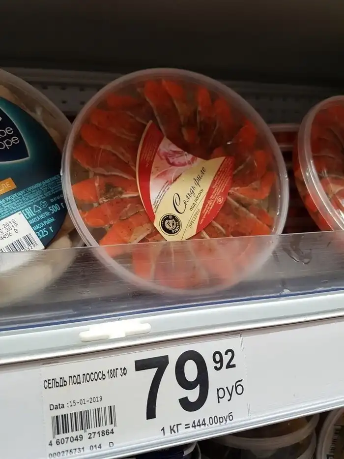 10. Сельдь в филе под лосось. Это что-то вроде искусственной красной икры?