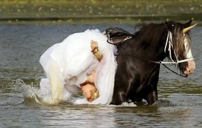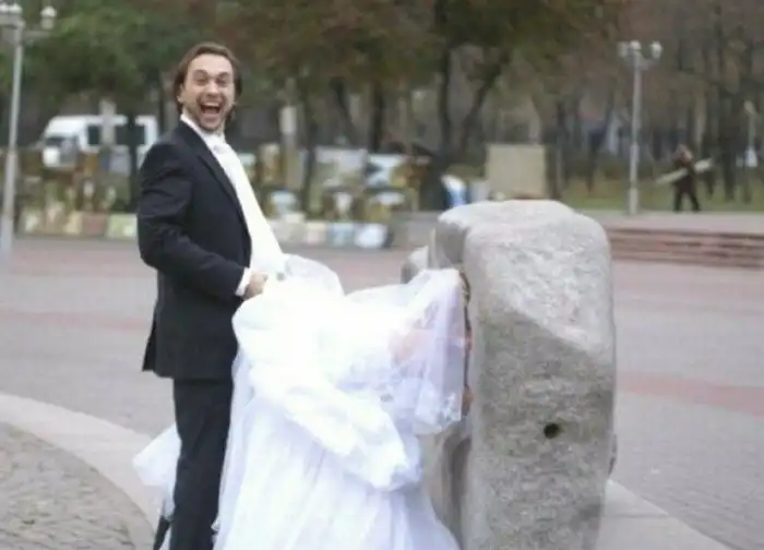 Свадьба - это прекрасное событие, на котором собираются родственники и друзья. Чтобы этот прошел хорошо и запомнился, надо тщательно подойти к выбору фотографа и тамады, а то конкурсы будут очень веселые, а фото - слишком эпичные. Мы собрали самые стереотипные кадры, которые нельзя показывать даже родственникам. Тот случай, когда фантазия фотографа бьет ключом!
