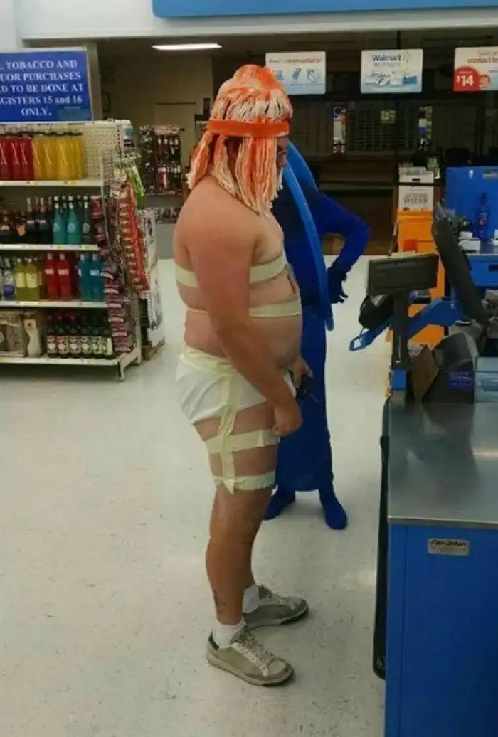 Каждый человек хочет быть неповторимым, и многие люди стараются одеться как можно эффектнее. Вот и посетители американских супермаркетов стараются, кто во что горазд. Но очень сложно понять: то ли они своим внешним видом хотят оставить в вашей памяти неизгладимый след, то ли просто перебарщивают с демонстрацией своей свободы и независимости от окружающего мнения. Представляем вашему вниманию подборку фото с такими персонажами.