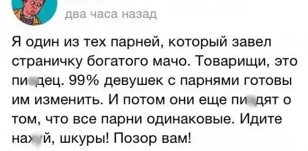 Иногда сильная половина человечества доходит до ручки и начинает резать правду-матку. Будьте осторожны, пост получился действительно очень жестким.