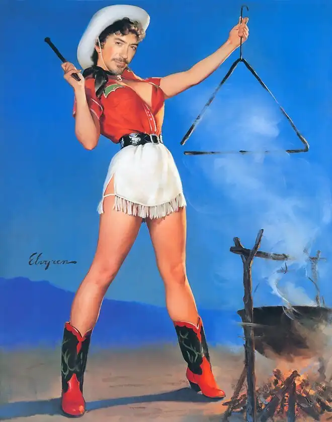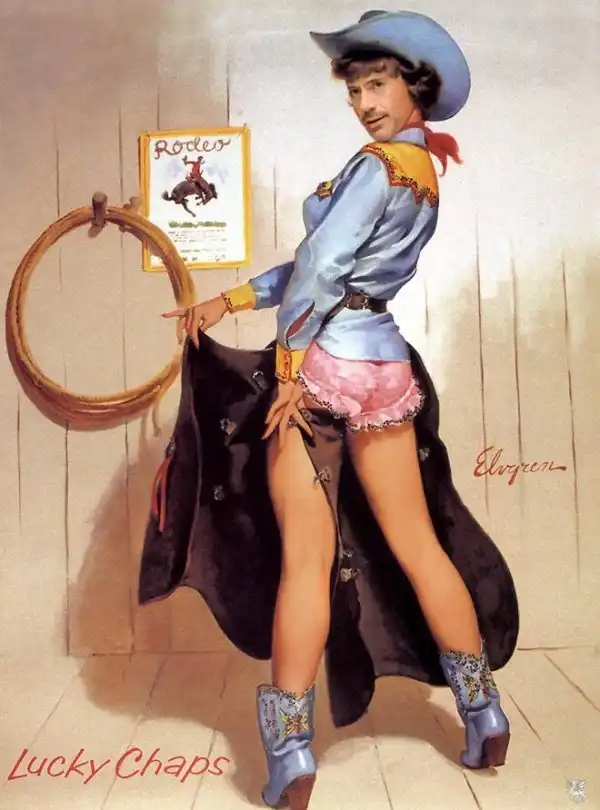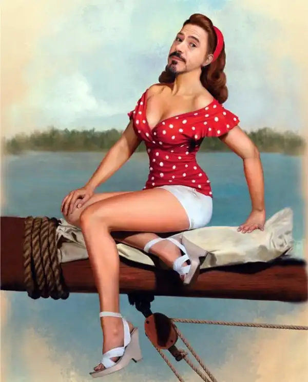 Роберт Дауни - младший - такой красавчик, что с легкостью может заменить красоток на плакатах в стиле пинап! Так решили дизайнеры-шутники, изготовившие целую серию плакатов, на которых личико легкомысленной красавицы заменили лицом голливудской звезды. Наслаждайтесь!