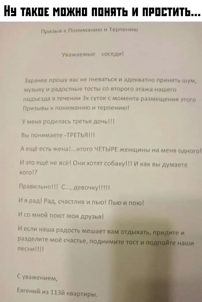Объявление про третью дочку - это не крик радости . Это - крик отчаяния ...