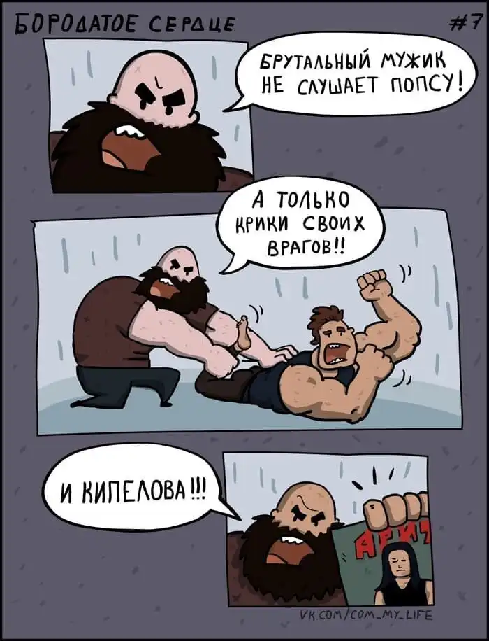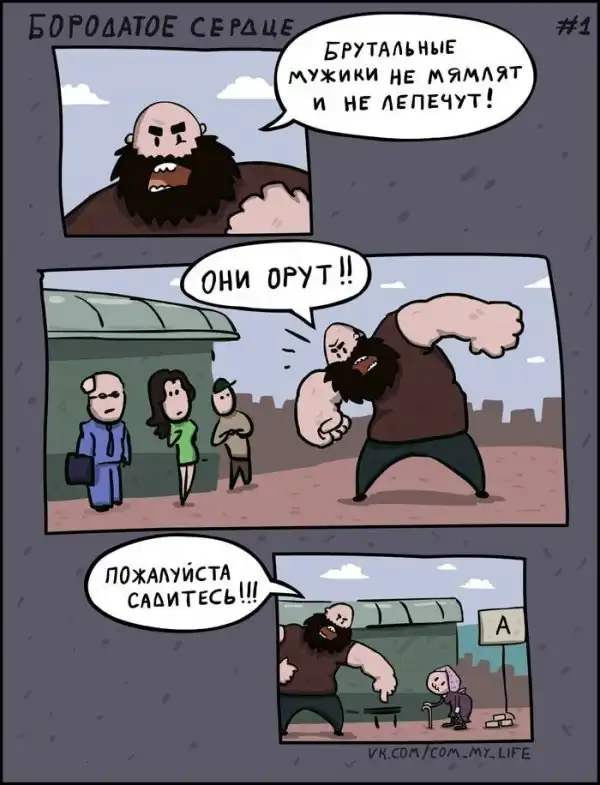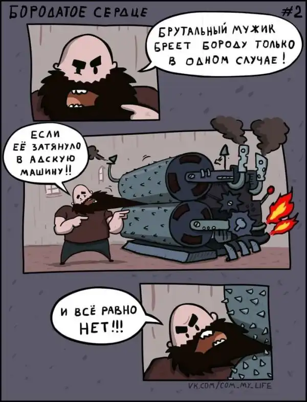 Ходят ли брутальные мужчины к врачу? Пользуются ли они косметикой? В каком (единственном!) случае они бреют бороду? Всё, что вы не знали и боялись, но так хотели спросить о бородатых и чрезвычайно мужественных представителях человечества вы найдёте в «энциклопедии» от комиксиста Юрия Кутюмова.