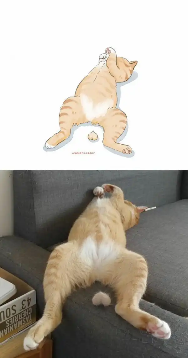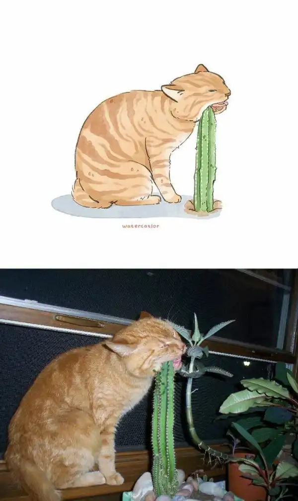 Художница Амелия Ризки, известная как Watercatlor, собирает по всему интернету смешные фотографии и мемы про кошек, а затем перерисовывает их в милые картинки. Посмотрите на ее акварельных котов - вы наверняка многих из них узнаете.