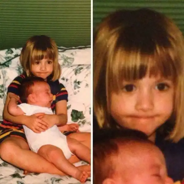 "Я нашла эту фотографию моей сестры и меня. На этой фотографии ей было около двух недель. Прямо в это время я поняла, что я больше не являюсь единственным ребенком в семье"