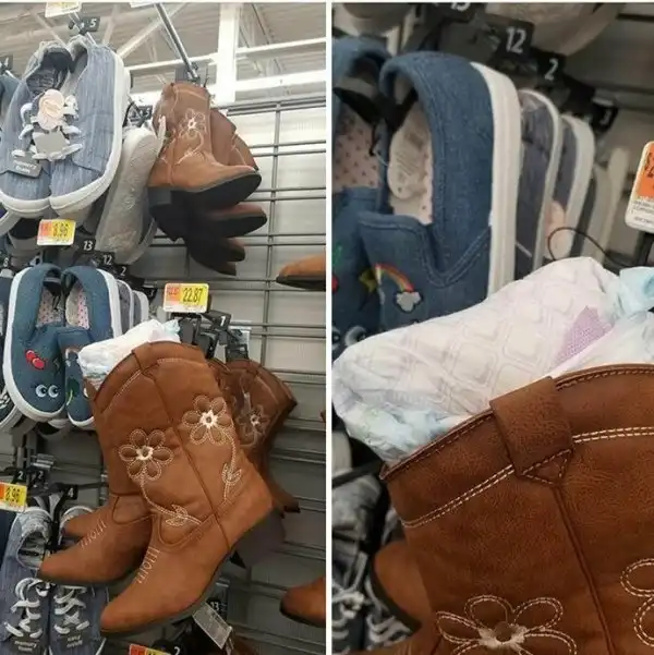 А эта мама оставила использованный памперс в обувном магазине. Прямо в сапоге.