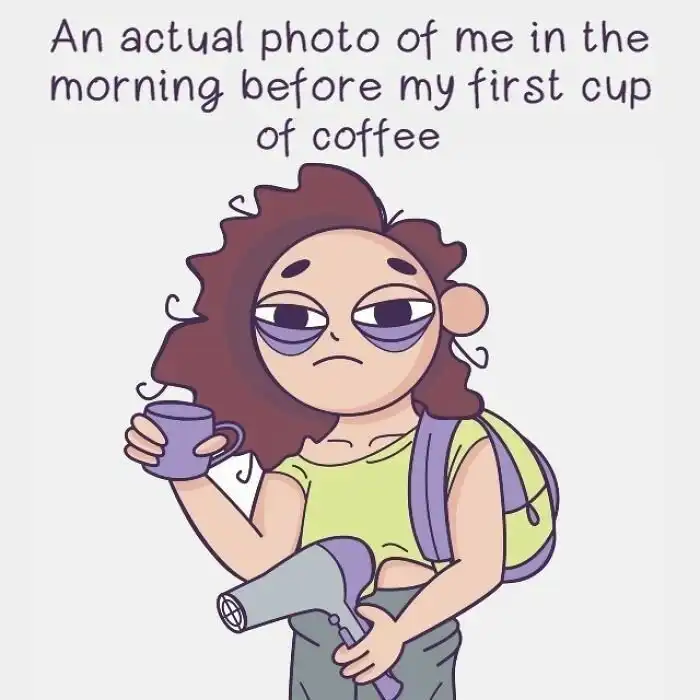 "Как я на самом деле выгляжу утром до первой чашки кофе".