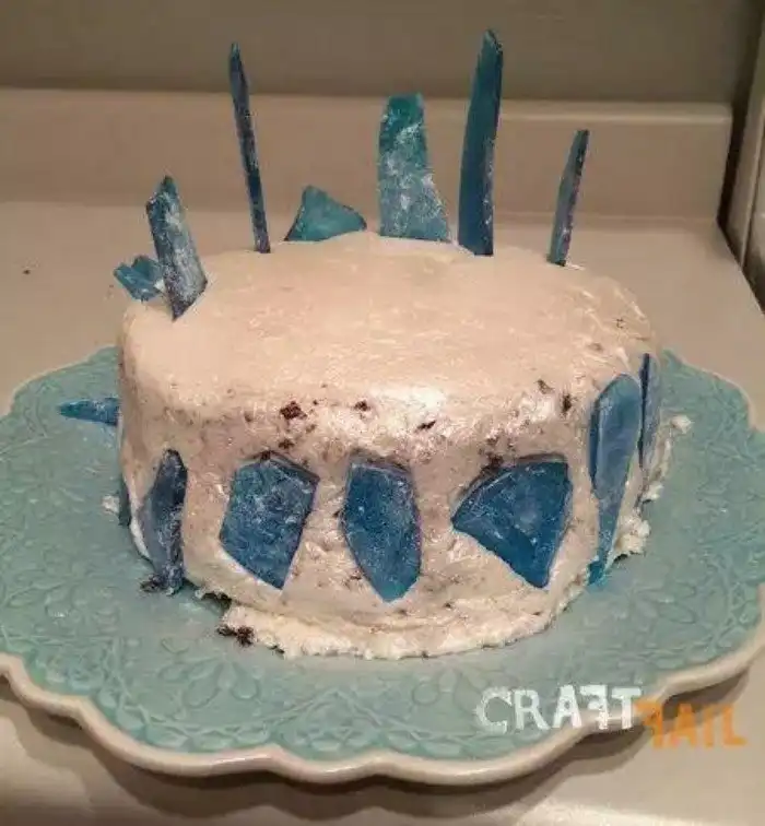 Довольно неплохой торт в стиле «Холодного сердца» и хоть с самим мультфильмом связь косвенная, но здесь хотя бы обошлось без уродства персонажей