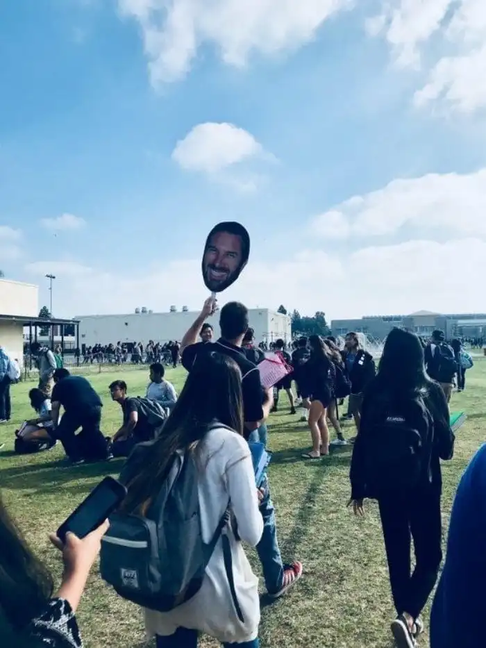 Чтобы никто не потерялся, учитель носит распечатку своего лица на палочке