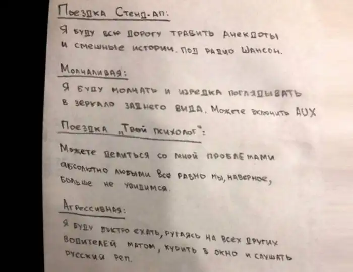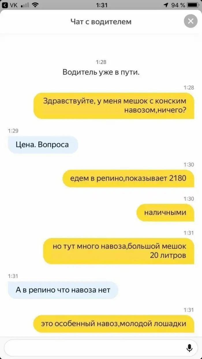 Работа в такси полна неожиданностей. Есть не только странные пассажиры, но и не менее странные водители, общение между которыми может скрывать много интересного. Мы собрали смешные переписки, которые могут вам поднять настроение в эту пятницу.
