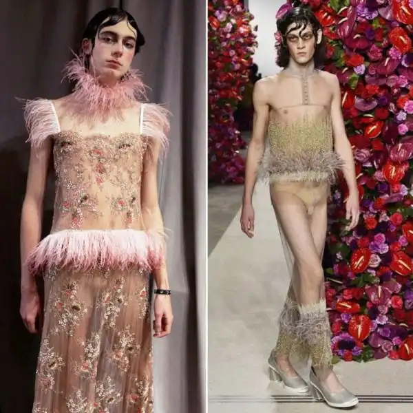 Чулки, корсеты, туфли на шпильках, юбки, платья и полупрозрачная ересь в перьях – такой видят мужскую моду дизайнеры. Они показывают на подиумах такую галиматью, что даже барышни постеснялись бы носить.
