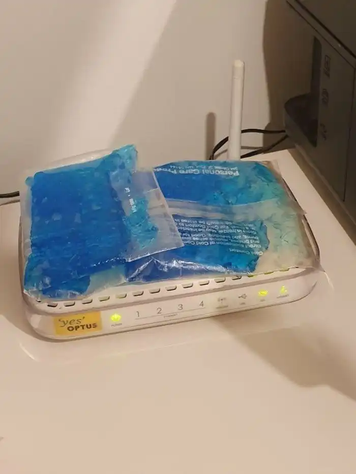 6. "Роутер перестал работать, поэтому я положил на него пакет со льдом. Теперь скорость отличная!"