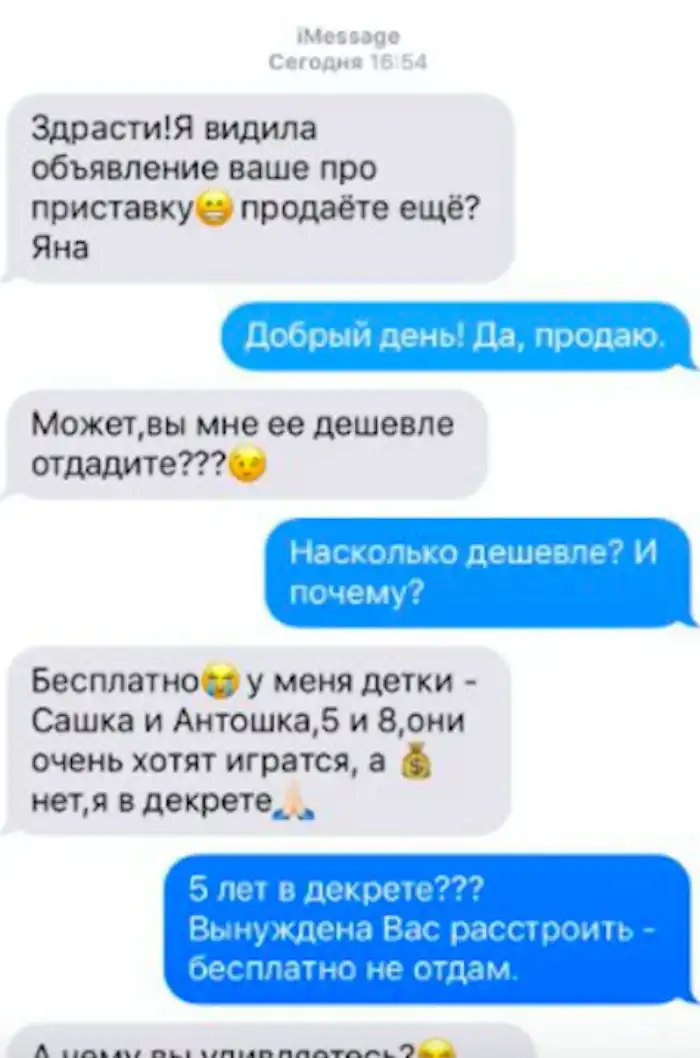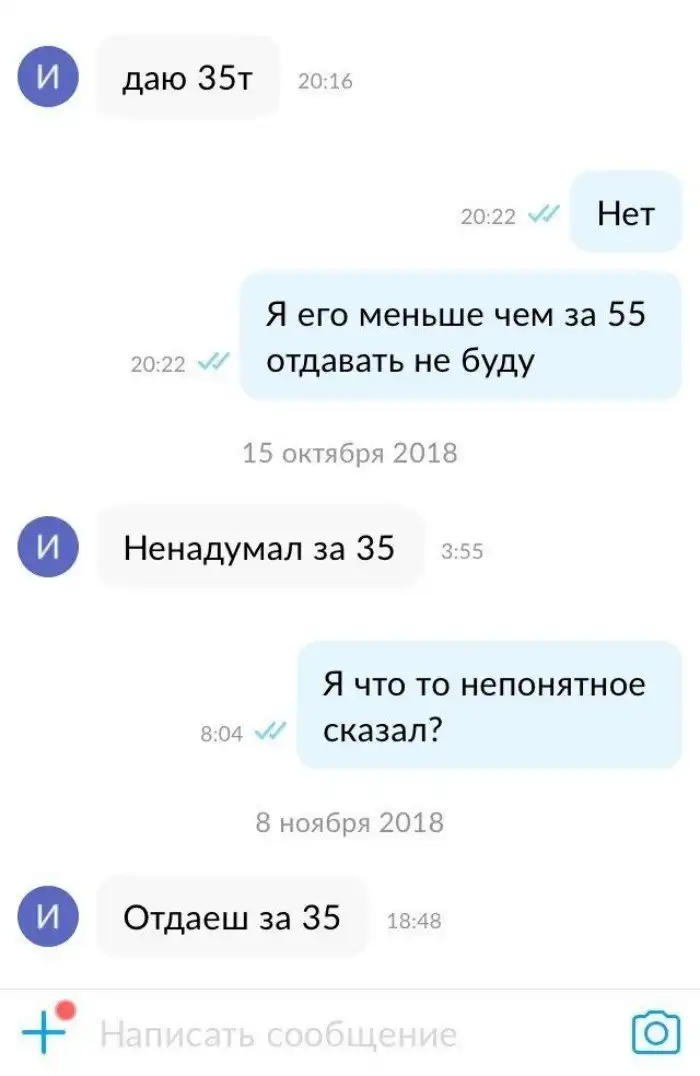 Многие пользуются услугами Авито и других сервисов для продажи своих вещей. Конечно, торговаться можно, но иногда попадаются неадекватные продавцы и покупатели. Мы собрали переписки, в которых люди хотят забрать бесплатно, обменять на что-то ненужное или сильно скинуть цену. Попадали в подобную ситуацию?