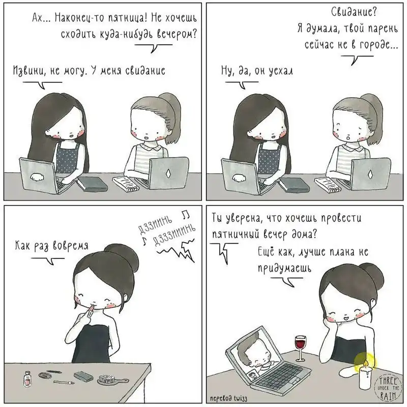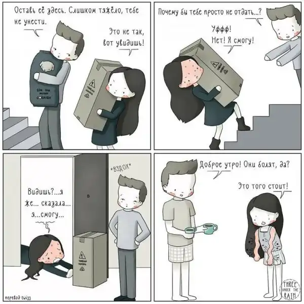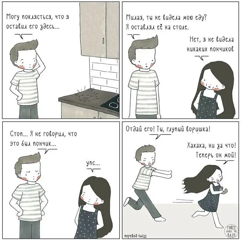 Бриса - иллюстратор, которая рисует забавные, милые и романтичные аспекты своих дней. На страничке инстаграм Three Under The Rain (Трое под дождём), она публикует забавные и милые комиксы о себе, своём парне и их собаке Марли.