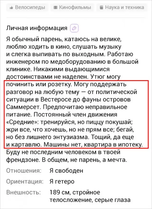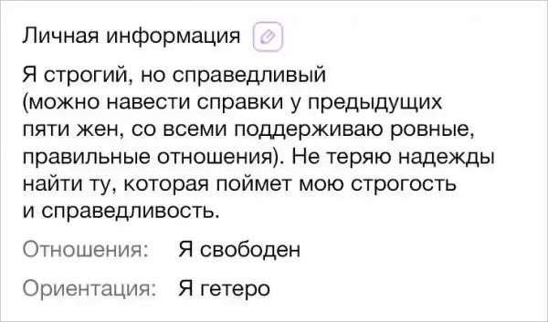 Чтобы найти свою половинку на сайте знакомств, нужно выделяться из общей массы. Легче всего это сделать с помощью убойной анкеты. Эти ребята решили быть максимально откровенными и честными. Стоит признать, такой подход сработал.