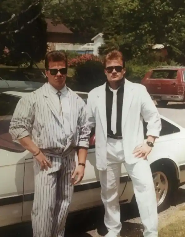 Мои папа и дядя позируют на фоне Nissan 300ZX, конец 80-х