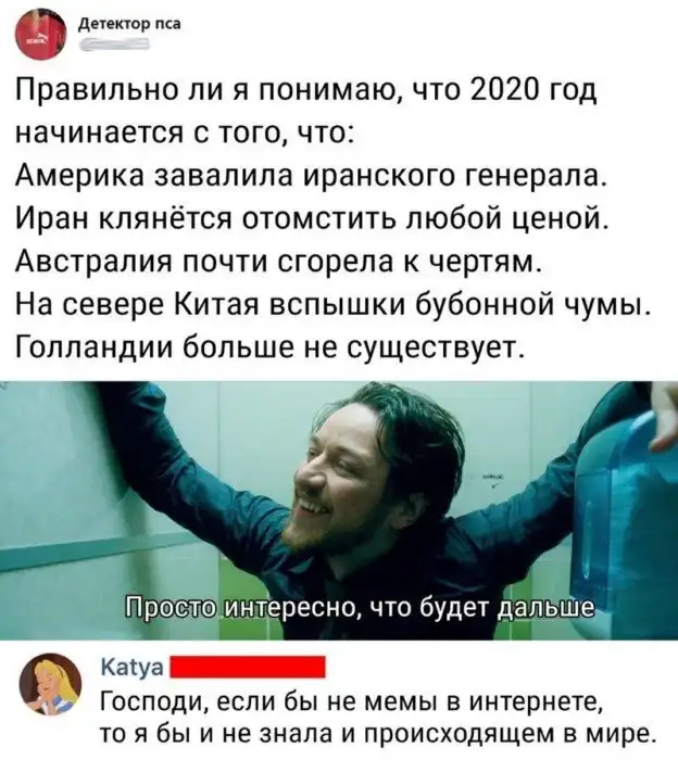 Даже удивительно: на дворе новогодние каникулы, а у народа мозг еще не до конца заплыл оливье! Шутят, общаются, делятся мемами. И это замечательно!
