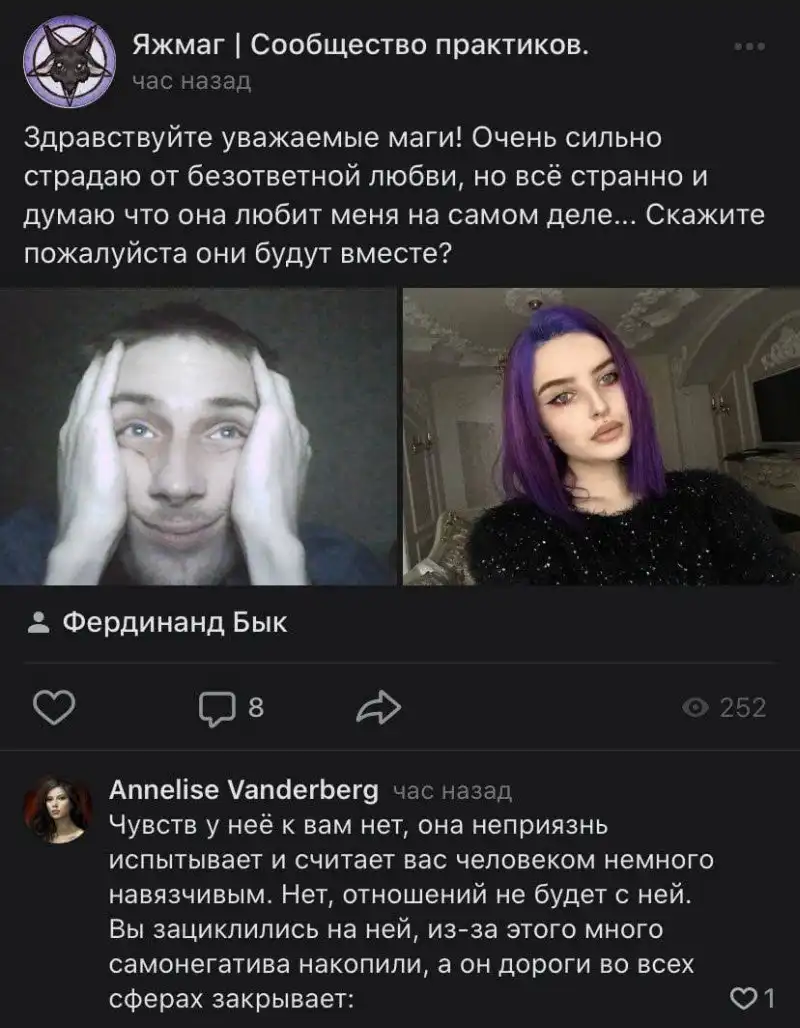 Лучшее сообщество – люди пишут в паблик магов и экстрасенсов.
