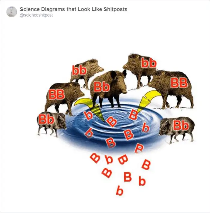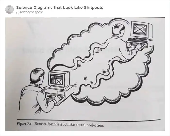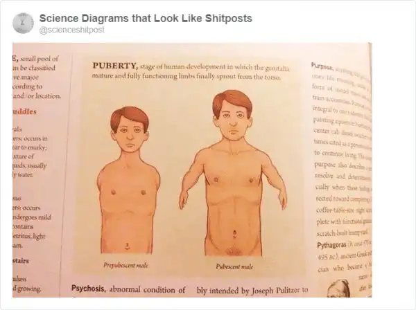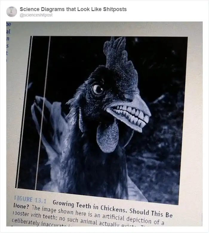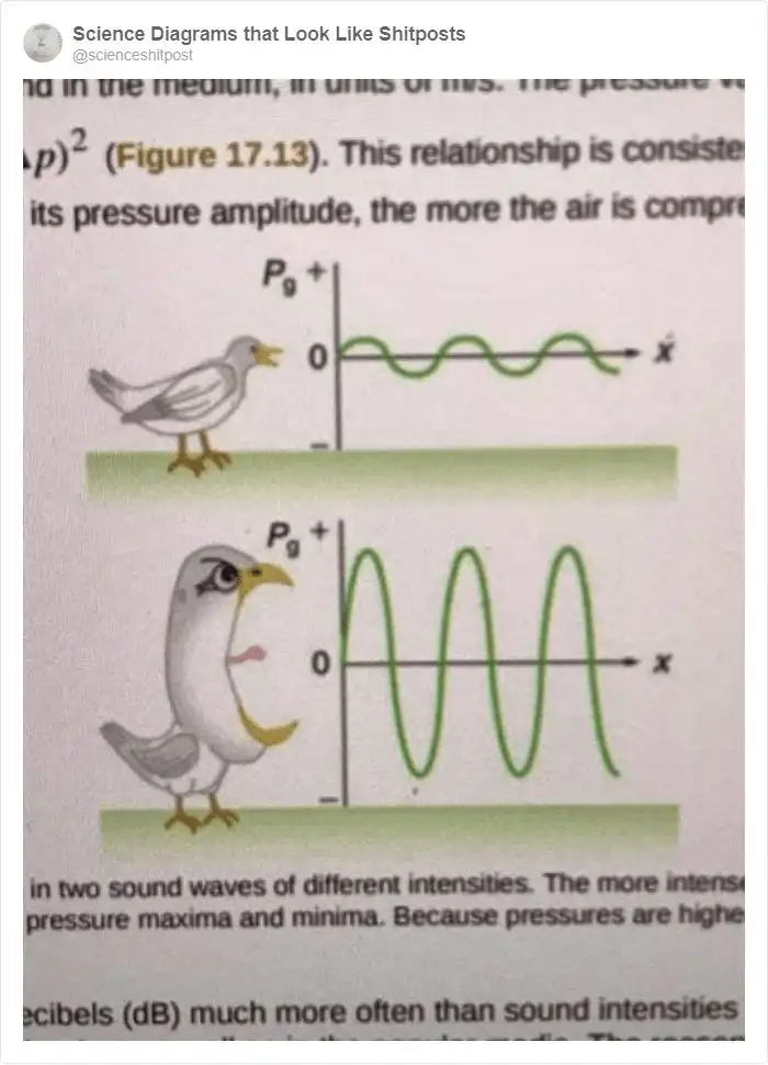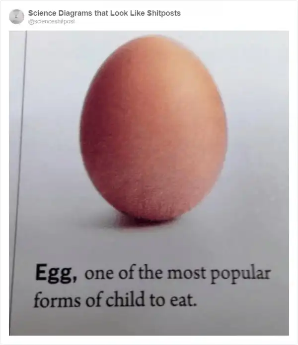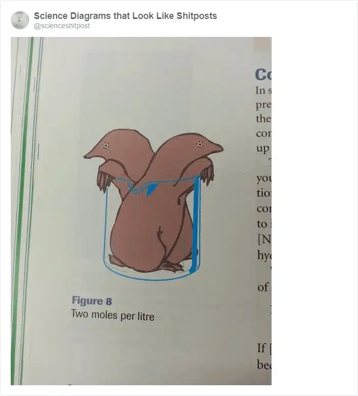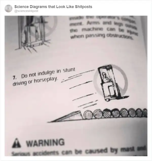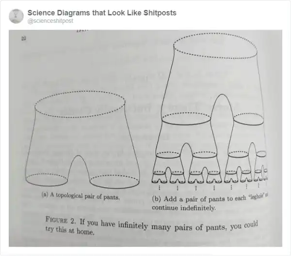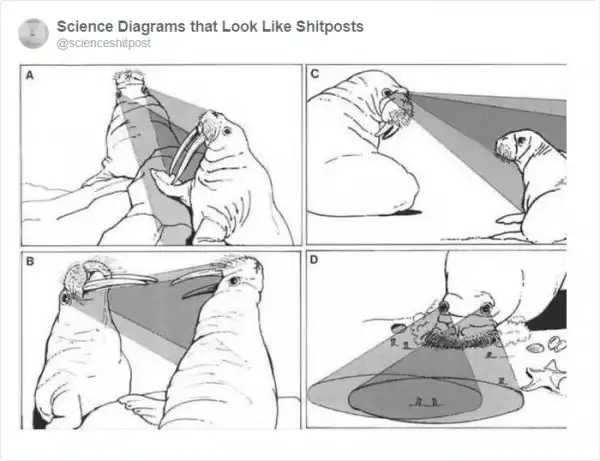 В Твиттер-аккаунте под названием Science Diagrams that Look Like Shitposts (приблизительный перевод: «Научные диаграммы, которые выглядят как упоротые картинки из интернета») постятся только реальные вырезки из печатных или онлайн-учебников по различным чаще всего техническим дисциплинам. Что именно демонстрируется на диаграммах — не уточняется, но выглядят они как какой-то прикол, хоть таковым и не являются.