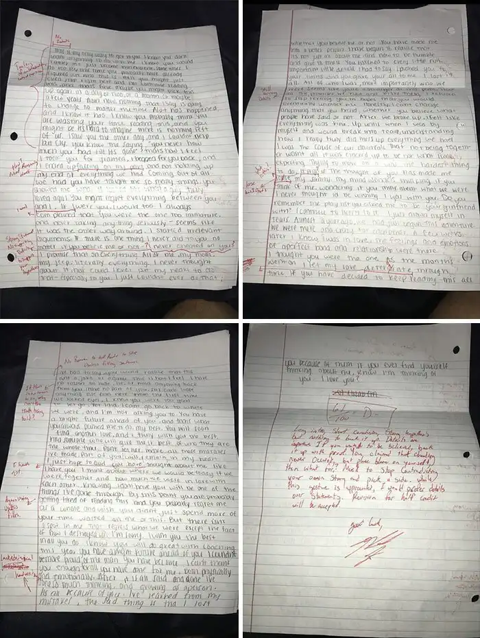"Бывший прислал письмо с извинениями. Я исправила все ошибки, выставила оценку и отослала его назад"