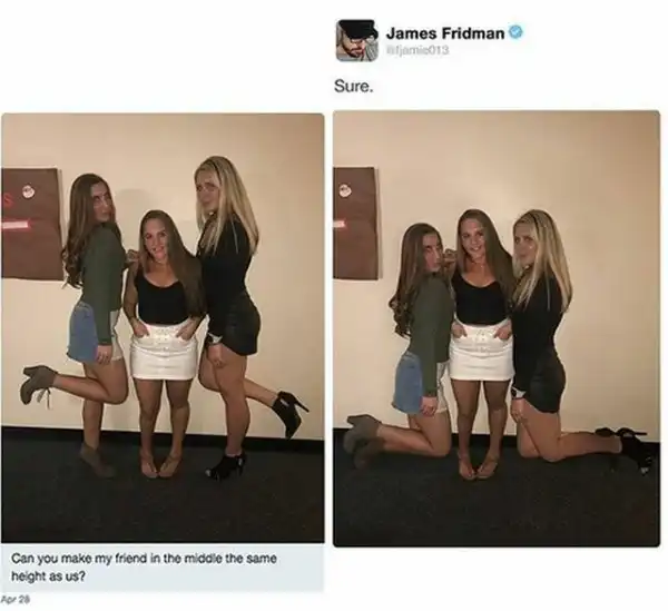«А можешь сделать мою подругу по центру такого же роста, как мы?»