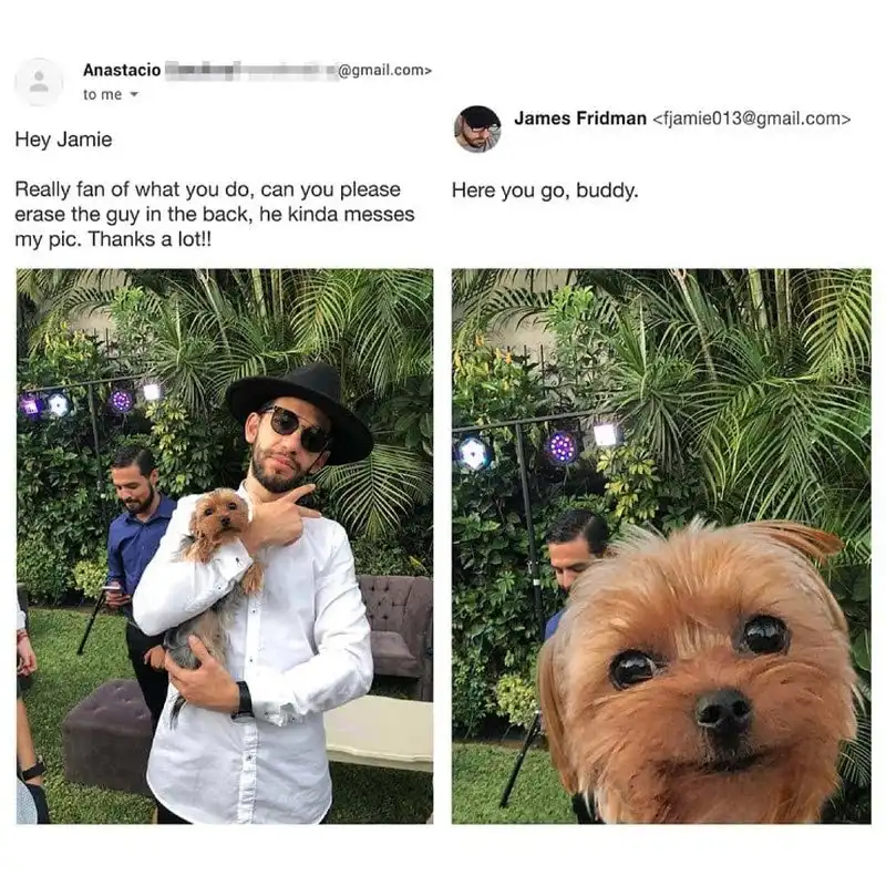 Мастер графического редактора принимает заказы от своих подписчиков и абсолютно бесплатно обрабатывает и изменяет их фотографии. Но только есть одно маленькое «но» — если просьбу человека можно понять двояко, то Джеймс так и сделает. За это мужчину любят в сети — и отправляют ему снимки несмотря ни на что.