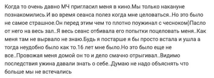 13. Забыл, что если целоваться планируешь, то есть чеснок не надо