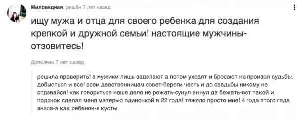 Некоторые разведенные девушки с детьми считают, что их обязаны содержать. Они ищут новых мужей, которые возьмут обязанности по воспитанию детей и обеспечению семьи на себя. Мы собрали отчаянные попытки барышень найти своих спонсоров! Как думаете, у них есть шанс на счастливый брак?