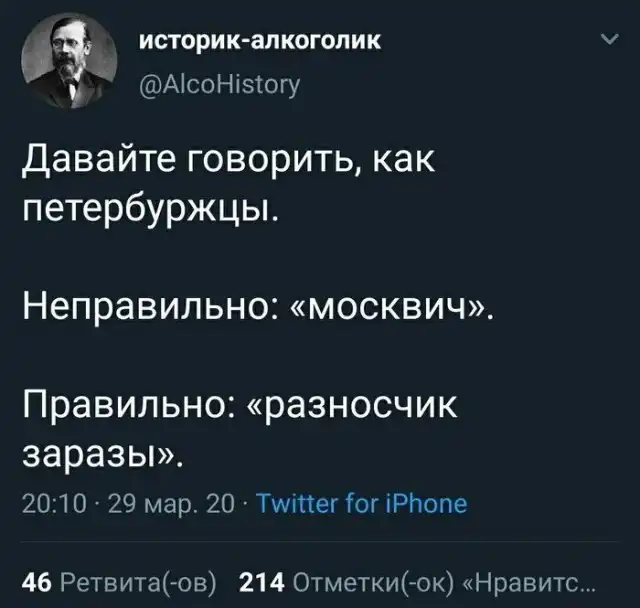 Как всем известно, жители российской столицы переживают не лучшие времена. Полумеры, принимаемые властями, запрещают выходить без причины на улицу. Помощи от чиновников никакой - им важнее заниматься штрафами и перекладыванием плитки на тротуарах. Но пользователи в интернете те еще оптимисты, поэтому шутят и на эту тему.