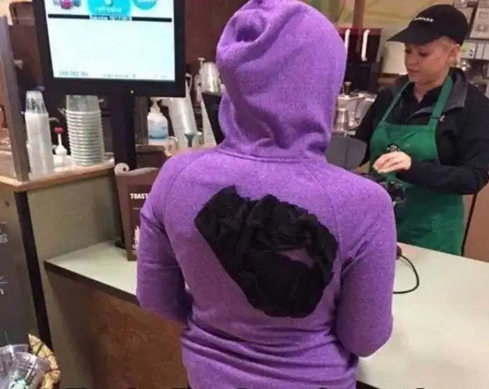 13. Понедельник, утро, девушка в кафе с трусами на толстовке