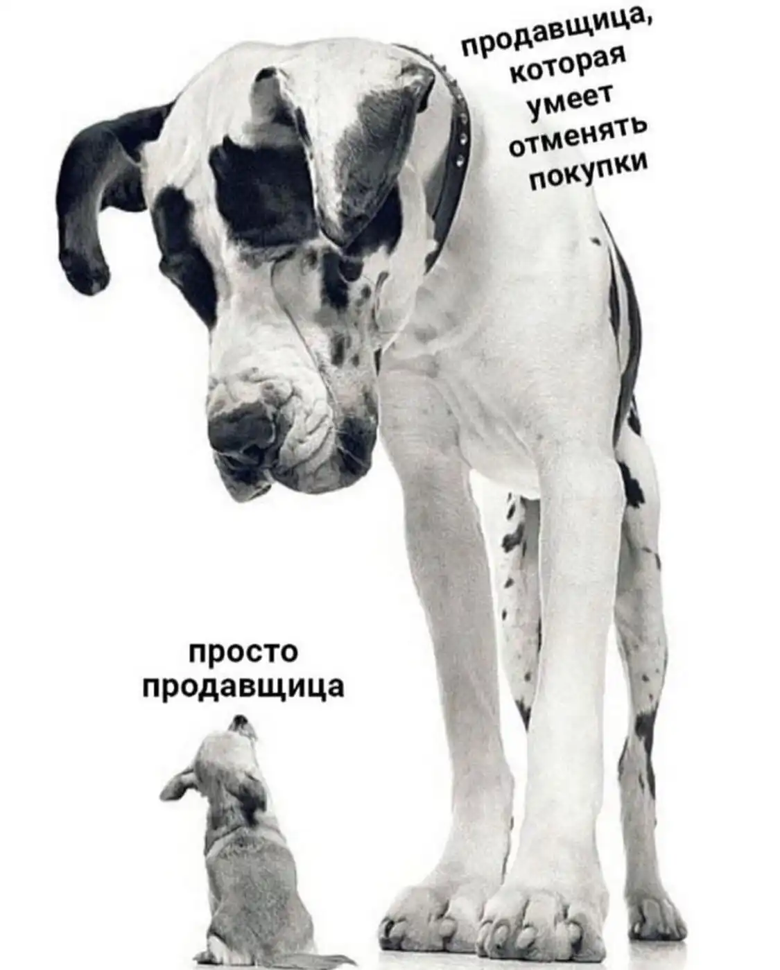 Как заеьали мемы про умеющую отменять покупки продавщицу!!! Это АДМИНИСТРАТОР! продавцы не имеют доступа к отменам! Чтобы не метутить с покупками (п*здить товар через подставных покупателей)