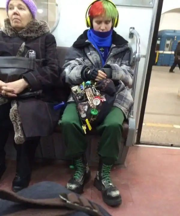 Очередная подборка фотографий со странными и модными персонажами, которых можно встретить в нашем метрополитене.