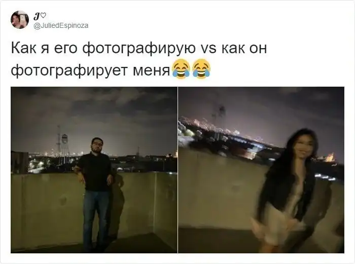 Девушки делятся сравнительными фотографиями, где их снимали их парни и где они снимали своего парня. Девушкам хочется, чтобы в соцсетях были красивые фоточки, и кого ещё о них просить, как не своих любимых парней? Только есть одна проблемка. Представительницы прекрасного пола сравнили, как они снимают своих молодых людей, и как те снимают их в ответ. Выводы неутешительные.