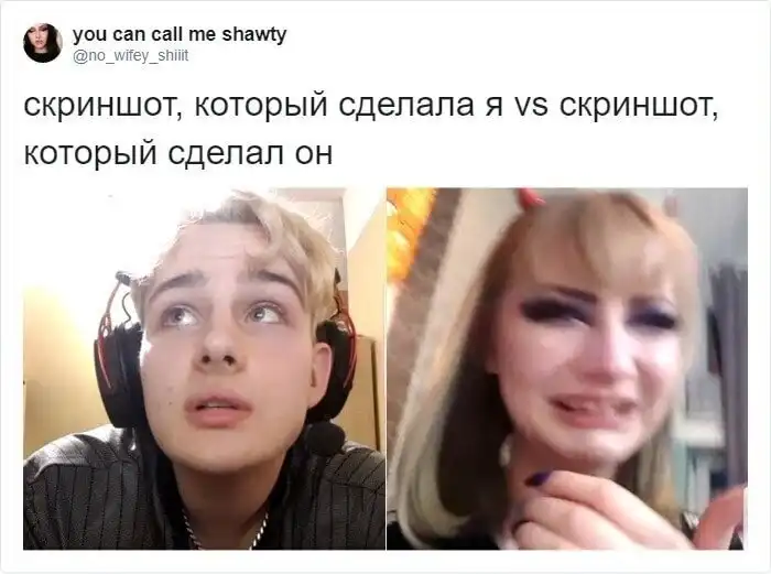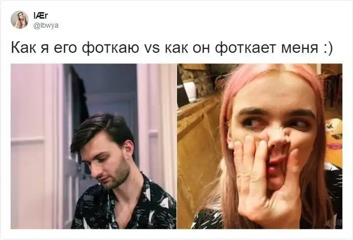 Нет, ну это правда обидно: девушки стараются, выбирают ракурс, свет, чтобы всё было красиво, в то время как парни только и ждут, как бы подловить забавный момент, от которого потом их половинке придётся краснеть от стыда.