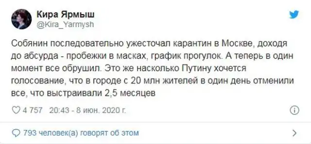 Реакция россиян на отмену режима самоизоляции