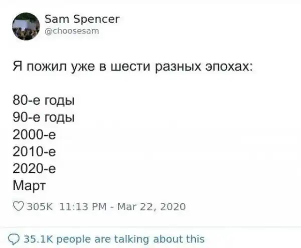 2020 год, как известно, не особо порадовал позитивными новостями. То возможность начала третьей мировой войны, то пандемия, то протесты в США. В общем, именно на эту тему и шутят пользователи социальных сетей, создавая все новые и новые мемы.